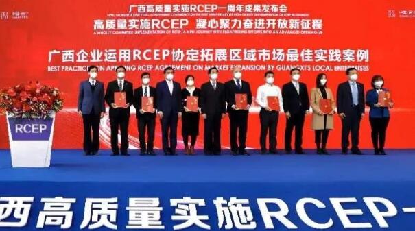 2022年12月30日上午,廣西高質量實施RCEP一周年成果發布會在南寧舉行,會議為運用RCEP協定拓展區域市場最佳實踐案例企業頒發了榮譽證書,APP(中國)旗下廣西金桂漿紙憑借過硬實力在案例大賽中獲得佳績。這是金桂在2022年獲得“欽州首份RCEP原產地證書”、“欽州首家海關經核準出口商”、“廣西RCEP推廣實施試點企業”之后,再次榮獲的“RCEP”相關榮譽。