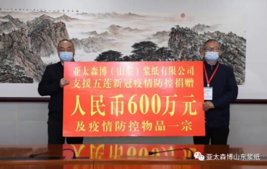 2022年,日照市以一己之力舉辦山東省第25屆運動會。“這是日照市和山東省的大事,亞太森博一定積極支持!”企業負責人表示。亞太森博為省運會慷慨贊助800萬元人民幣,成為山東省第25屆運動會高級合作伙伴,公司志愿者還走訪省運會城市志愿服務驛站,送去了便民服務物資。 在疫情爆發初期,亞太森博在做好自身疫情防控的同時,整合各方優勢資源助力抗疫,成為日照市抗擊疫情的重要力量。企業捐贈600萬元人民幣支援五蓮新冠疫情防控,向全市捐贈1300多噸次氯酸鈉消毒液原液。企業被中國紅十字總會授予“中國紅十字博愛獎章”,被政府有關部門和組織授予“疫情防控先進單位”。