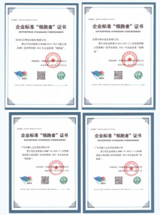 衛(wèi)生巾企業(yè)標(biāo)準(zhǔn)領(lǐng)跑者證書