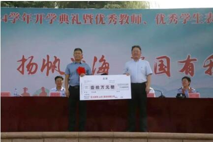 在典禮上,學校隆重表彰了上一學年中教學成果優異的教師,李潤明代表公司為獲獎教師頒發“亞太森博杯”新課改教育教學獲獎證書和獎教金。