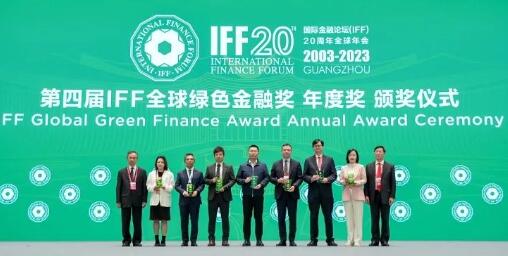 “IFF全球綠色金融獎(jiǎng)-年度獎(jiǎng)"獎(jiǎng)杯和證書 “IFF全球綠色金融獎(jiǎng)”由國(guó)際金融論壇(IFF)于2020年發(fā)起設(shè)立。國(guó)際金融論壇(IFF)則由中國(guó)、美國(guó)、歐盟等G20國(guó)家和地區(qū)、新興經(jīng)濟(jì)體,以及聯(lián)合國(guó)、世界銀行、國(guó)際貨幣基金組織等相關(guān)國(guó)際組織及領(lǐng)導(dǎo)人共同發(fā)起成立,是全球金融領(lǐng)域高級(jí)別常設(shè)對(duì)話機(jī)制和多邊合作機(jī)構(gòu)。 本屆“IFF全球綠色金融獎(jiǎng)”的評(píng)審關(guān)注利用金融手段推動(dòng)綠色發(fā)展,鼓勵(lì)創(chuàng)新性和實(shí)際效果。評(píng)審委員會(huì)由中外25位具有全球影響力和權(quán)威性的重要財(cái)經(jīng)領(lǐng)袖和金融界、環(huán)境界專家組成。年度獎(jiǎng)評(píng)分標(biāo)準(zhǔn)包括4項(xiàng),36%是參評(píng)機(jī)構(gòu)創(chuàng)新實(shí)踐的可持續(xù)性,24%是參評(píng)機(jī)構(gòu)利用金融手段推動(dòng)綠色轉(zhuǎn)型、應(yīng)對(duì)氣候風(fēng)險(xiǎn)以及實(shí)現(xiàn)可持續(xù)目標(biāo)中的創(chuàng)新性,20%是參評(píng)機(jī)構(gòu)的貢獻(xiàn)度,最后20%是參評(píng)機(jī)構(gòu)創(chuàng)新實(shí)踐的可推廣和可復(fù)制性。 本次獲獎(jiǎng)的還有國(guó)際資本市場(chǎng)協(xié)會(huì)、南方基金、螞蟻科技集團(tuán)等機(jī)構(gòu)。