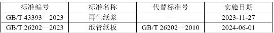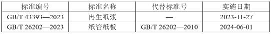 2023年11月27日,國家市場監督管理總局(國家標準化管理委員會)發布2023年第13號公告,批準發布《液壓缸試驗方法》等468項推薦性國家標準,其中包括《再生紙漿》《紙管紙板》兩項造紙領域國家標準,具體信息如下。