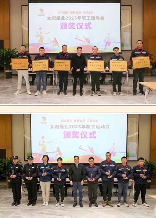 陳昭軍在致辭時表示,本次運動會充分展現了太陽人團結協作、頑強拼搏的體育精神和積極向上、追求卓越的精神風貌,希望廣大員工把本屆運動會激發出的熱情激情,轉化為愛崗敬業、奮斗實干的強勁動力,凝聚成攻堅克難、奪取勝利的強大合力,堅持干就干到最好、做就做到極致,共同開創太陽紙業新的輝煌,共同創造太陽家人更加美好幸福的生活。