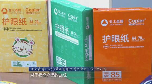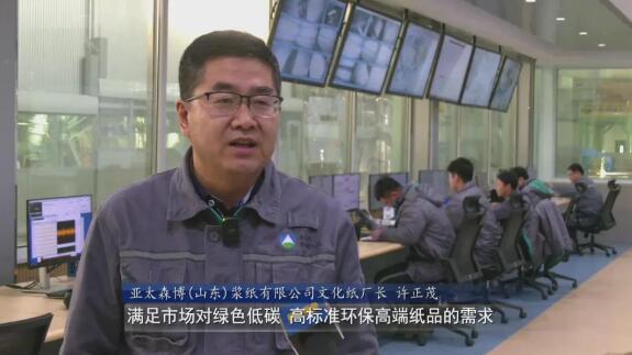 亞太森博(山東)漿紙有限公司文化紙廠長許正茂:該生產線以100%人工種植林纖維作為原料,滿足市場對綠色低碳、高標準環保高端紙品的需求,亞太森博系列復印紙目前占有全國市場份額的33%。