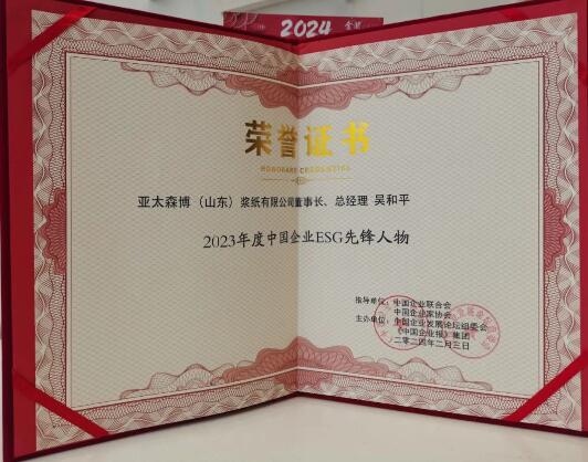 2月3日,第二十一屆中國(guó)企業(yè)發(fā)展論壇暨“2023年度中國(guó)企業(yè)影響力十件大事”系列發(fā)布儀式在北京舉行。會(huì)上,亞太森博(山東)漿紙有限公司董事長(zhǎng)、總經(jīng)理吳和平被評(píng)為“2023年度中國(guó)企業(yè)ESG先鋒人物”。 本次論壇由中國(guó)企業(yè)聯(lián)合會(huì)、中國(guó)企業(yè)家協(xié)會(huì)指導(dǎo),《中國(guó)企業(yè)報(bào)》集團(tuán)、中國(guó)企業(yè)發(fā)展論壇組委會(huì)主辦。本次論壇的主題是“催動(dòng)新質(zhì)生產(chǎn)力,推進(jìn)高質(zhì)量發(fā)展”,旨在引領(lǐng)現(xiàn)代化產(chǎn)業(yè)體系建設(shè),推動(dòng)科技創(chuàng)新、壯大新質(zhì)生產(chǎn)力,賦能企業(yè)健康成長(zhǎng)、產(chǎn)業(yè)鏈做優(yōu)做強(qiáng)和經(jīng)濟(jì)高質(zhì)量發(fā)展,共同探討企業(yè)當(dāng)前面臨的挑戰(zhàn)和機(jī)遇,分享創(chuàng)新經(jīng)驗(yàn)及成功案例,為企業(yè)發(fā)展提供新思路和新動(dòng)力,同時(shí)促進(jìn)政企學(xué)研互動(dòng)交流。