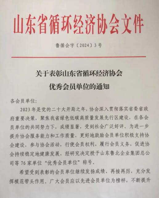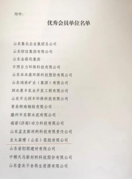 1月30日,山東省循環(huán)經(jīng)濟(jì)協(xié)會(huì)公布了優(yōu)秀會(huì)員單位的評(píng)選結(jié)果。亞太森博(山東)漿紙有限公司被評(píng)選為“2023年度山東省循環(huán)經(jīng)濟(jì)協(xié)會(huì)優(yōu)秀會(huì)員單位”。