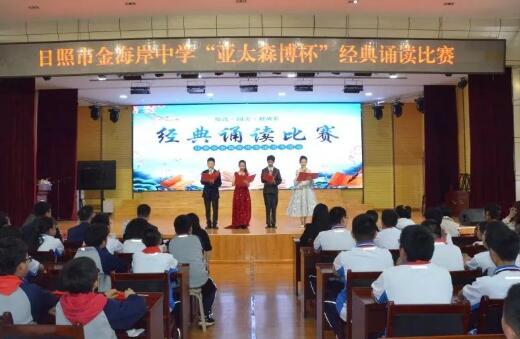 為豐富校園文化生活,引導學生深入了解中華民族的歷史和文化,感悟經典魅力,增強文化自信和民族自豪感,4月29日下午,在亞太森博(山東)漿紙有限公司的支持下,日照市金海岸中學舉辦了“悅讀·閱美·越成長”經典誦讀比賽。學校領導班子、公司代表、教師代表一同出席活動并擔任評委。