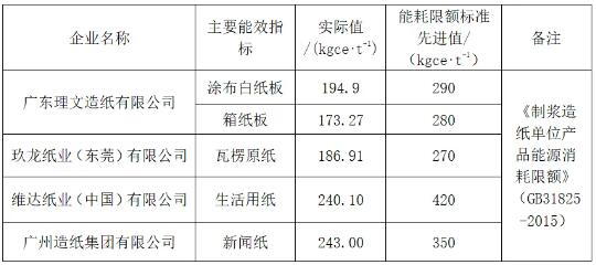 表42023年廣東省造紙行業(yè)“水效領(lǐng)跑者”名單
