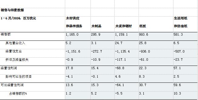 2024年1-6月(2023年1-6月同比數(shù)據(jù)) 銷售額為29.37億歐元(同比:31.16億歐元) 經(jīng)營(yíng)性利潤(rùn)為4600萬(wàn)歐元(同比:4.02億歐元);可比經(jīng)營(yíng)性利潤(rùn)為5700萬(wàn)歐元(3.8億歐元) 稅前利潤(rùn)為1900萬(wàn)歐元(同比:3.89億歐元);可比稅前利潤(rùn)為3000萬(wàn)歐元(同比:3.7億歐元) 可比已占用資本回報(bào)率為1.8%(同比:10.7%) 經(jīng)營(yíng)性凈現(xiàn)金流負(fù)2.52億歐元(同比:1800萬(wàn)歐元) 2024年4-6月(2023年4-6月同比數(shù)據(jù)) 銷售額為14.8億歐元(同比:14.81億歐元) 經(jīng)營(yíng)性利潤(rùn)為負(fù)1200萬(wàn)歐元(同比:1.27億歐元);可比經(jīng)營(yíng)性利潤(rùn)為負(fù)1300萬(wàn)歐元(同比:1.04億歐元) 稅前利潤(rùn)為負(fù)2600萬(wàn)歐元(同比:1.19億歐元);可比稅前利潤(rùn)為負(fù)2700萬(wàn)歐元(同比:9800萬(wàn)歐元) 可比已占用資本回報(bào)率為-0.3%(同比:5.9%) 經(jīng)營(yíng)性凈現(xiàn)金流為負(fù)1.14億歐元(同比:負(fù)1900萬(wàn)歐元) 2024年上半年主要事件 芬林集團(tuán)長(zhǎng)纖漿在歐洲和中國(guó)的平均銷售價(jià)格較上一季度有所增長(zhǎng)。 歐洲和北美市場(chǎng)對(duì)針葉商品漿的需求強(qiáng)勁。在中國(guó),商品漿的采購(gòu)活動(dòng)有所減弱。 與上一季度相比,芬林集團(tuán)紙板產(chǎn)品的需求和價(jià)格保持穩(wěn)定。交貨量略有增加。 在對(duì)蒸發(fā)部門氣體爆炸造成的損壞進(jìn)行修復(fù)后,凱米生物制品廠于6月份重新投入生產(chǎn)。 4月,芬林紙板做出了升級(jí)辛佩萊(Simpele)工廠紙機(jī)的投資決定。 2024年5月13日,芬林集團(tuán)完成將旗下俄羅斯子公司的所有權(quán)轉(zhuǎn)讓給VLP集團(tuán)的交易。2022年,芬林集團(tuán)停止了在俄羅斯的業(yè)務(wù)運(yùn)營(yíng),包括斯維爾(Svir)鋸材廠、木材供應(yīng)和紙板銷售。5月完成交易后,芬林集團(tuán)在俄羅斯不再擁有任何資產(chǎn)。該交易對(duì)財(cái)報(bào)期內(nèi)的經(jīng)營(yíng)成果產(chǎn)生了1380萬(wàn)歐元的影響。 2024年7-9月業(yè)績(jī)展望 與2024年4-6月相比,芬林集團(tuán)7-9月的可比經(jīng)營(yíng)性利潤(rùn)預(yù)計(jì)將有所改善。 芬林集團(tuán)總裁與首席執(zhí)行官何亦凱(IlkkaHämälä): 2024年上半年,芬林集團(tuán)的財(cái)務(wù)狀況非常不景氣。這是由于銷售價(jià)格(尤其是紙漿和紙板)同比下降,以及木材成本持續(xù)上升。在財(cái)報(bào)期內(nèi),因政治罷工導(dǎo)致營(yíng)業(yè)利潤(rùn)損失6000萬(wàn)歐元。凱米(Kemi)生物制品廠蒸發(fā)部門發(fā)生的氣體爆炸使可比營(yíng)業(yè)利潤(rùn)在保險(xiǎn)賠償前減少了約1億歐元。盡管數(shù)據(jù)黯淡,我們的許多業(yè)務(wù)都取得了積極的發(fā)展。在歐洲,紙漿市場(chǎng)在第二季度表現(xiàn)強(qiáng)勁,價(jià)格水平也在不斷提高。2024年對(duì)原生纖維紙板的需求與去年創(chuàng)紀(jì)錄的低水平相比明顯有所改善。盡管建筑行業(yè)持續(xù)疲軟,但Kerto®LVL(單板層積材)在價(jià)格和需求方面都保持了穩(wěn)定和良好的水平。生活用紙的盈利狀況仍在合理范圍,但原材料價(jià)格對(duì)業(yè)績(jī)水平有很大影響。在我們所有的產(chǎn)品類別中,目前只有鋸材和云杉膠合板的疲軟周期仍在繼續(xù),它們直接受到了建筑業(yè)低迷情緒的影響。 年初,我們繼續(xù)為集團(tuán)的未來(lái)發(fā)展做工作。我們的Kuura®紡織纖維項(xiàng)目已進(jìn)入下一階段,我們將在該階段探索工業(yè)投資的機(jī)會(huì)。示范工廠將繼續(xù)運(yùn)營(yíng),為市場(chǎng)生產(chǎn)紡織品原料,以獲得客戶反饋。 位于芬蘭勞馬(Rauma)的模塑MuotoTM纖維基包裝工業(yè)規(guī)模工廠的前期工程項(xiàng)目正在進(jìn)展中。今年下半年,我們?cè)诎瑑?nèi)科斯基(Äänekoski)的示范工廠將從開發(fā)活動(dòng)轉(zhuǎn)向?yàn)樽罱K客戶生產(chǎn),為工廠的工業(yè)化階段尋求產(chǎn)品開發(fā)反饋。該產(chǎn)品的主要最終用途是替代化石材料用于食品包裝。我們還在研究于艾內(nèi)科斯基建造的示范工廠提煉木質(zhì)素的問(wèn)題。木質(zhì)素可用于替代許多化學(xué)工業(yè)產(chǎn)品中的化石原料。它的第一個(gè)應(yīng)用領(lǐng)域?qū)⑹腔炷列袠I(yè)中使用的添加劑。從紙漿行業(yè)的燃燒氣體中捕捉碳的研究是一個(gè)非常廣泛和重要的開發(fā)項(xiàng)目。歐盟未來(lái)更嚴(yán)格的碳捕集目標(biāo)包括大量技術(shù)碳捕集計(jì)劃。芬林集團(tuán)的碳捕集潛力每年超過(guò)1000萬(wàn)噸,但該項(xiàng)目在技術(shù)方面極具挑戰(zhàn)性,并且需要立法支持捕集碳的使用。 這些大型開發(fā)項(xiàng)目的準(zhǔn)備和潛在實(shí)施需要芬林集團(tuán)的現(xiàn)有業(yè)務(wù)保持競(jìng)爭(zhēng)力,并為開發(fā)投入創(chuàng)造現(xiàn)金流。芬林集團(tuán)主要產(chǎn)品的市場(chǎng)正在不斷擴(kuò)大,我們?cè)谶x定的產(chǎn)品細(xì)分市場(chǎng)中擁有強(qiáng)大的地位。紙漿行業(yè)對(duì)芬蘭林業(yè)極為重要,其形勢(shì)與我們作為全球最大的針葉商品漿生產(chǎn)商的市場(chǎng)地位相匹配。 芬林芬寶的所有四家工廠在針葉漿生產(chǎn)方面都具有世界一流的績(jī)效表現(xiàn),其中凱米和艾內(nèi)科斯基工廠與競(jìng)爭(zhēng)對(duì)手相比