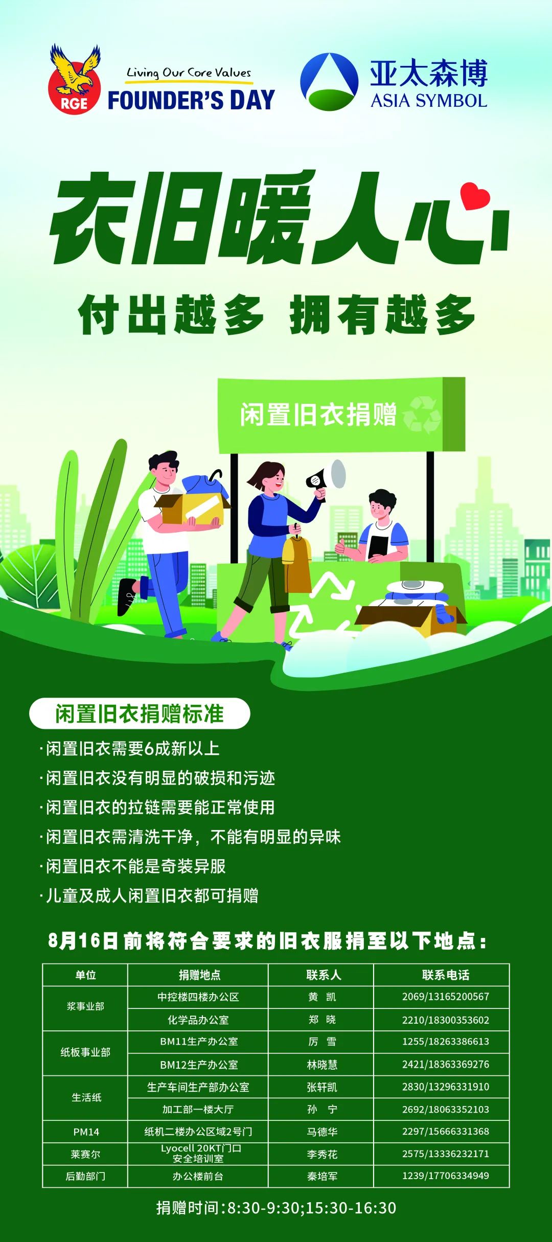 全體員工將家中閑置舊衣物捐贈