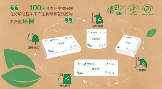 與南航擁有相同環保理念的清風商用,是金光集團APP中國旗下商用解決方案提供商。為推動行業綠色轉型,踐行集團綠色大循環理念,清風商用致力于科技創新,運用PLA等可降解材料,可實現100%可堆肥生物降解,在分解過程中不產生有毒有害殘留物,為廣大航空公司、ESG 50央企、各行業綠色發展先行者提供更加環保、高效的清潔衛生解決方案。