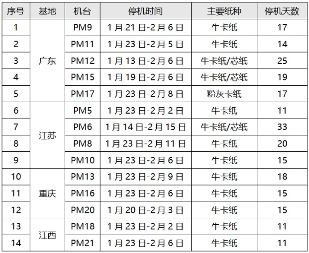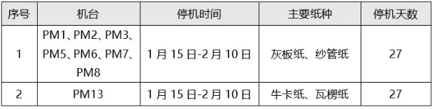 近期,廣東省造紙行業協會根據各企業公告和媒體報導的信息進行收集整理,匯總了截至2025年1月10日部分造紙企業公布的2024年春節停機檢修情況。詳見下表,信息僅供參考。