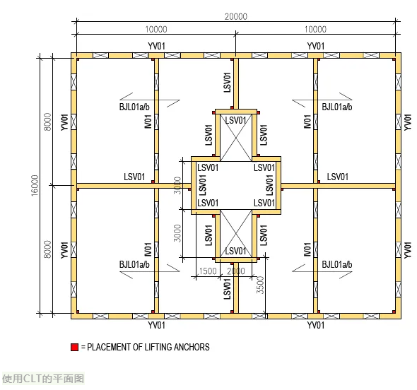 內外墻均為承重和支撐墻,保溫材料使用礦物棉。此外,建筑設計能夠承受2.0 kN/m2的雪載和24 m/s的風載,符合斯德哥爾摩II型地形的要求。 *請注意,這是針對瑞典市場進行的比較,但如果您有需求,歡迎聯系您當地的銷售代表,以找到適合您需求和要求的解決方案。本設計由建筑技術顧問Bjerking AB執行。 使用CLT建造房屋時,除了需要承重外墻,公寓內部也需要承重墻,因為中間樓層較短。而使用Kerto LVL建造時,由于荷載由公寓的外墻承擔,因此不需要承重內墻。