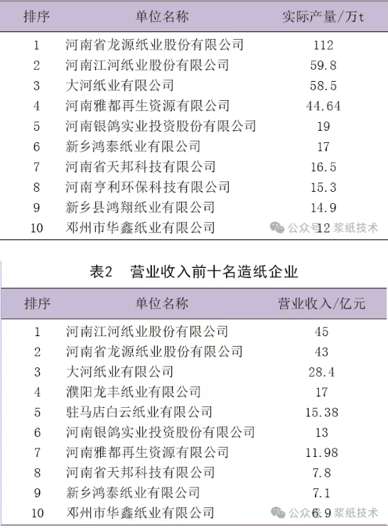 1 2024年行業(yè)概況 1.1 主要經(jīng)濟(jì)指標(biāo) 2024年河南省造紙行業(yè)與全省經(jīng)濟(jì)一樣,運(yùn)行呈現(xiàn)穩(wěn)中向好、穩(wěn)中向新、穩(wěn)中向優(yōu)的發(fā)展態(tài)勢(shì),高質(zhì)量發(fā)展扎實(shí)推進(jìn),堅(jiān)定扛穩(wěn)了經(jīng)濟(jì)大省勇挑大梁的政治責(zé)任,行業(yè)發(fā)展日新月異。近兩年來(lái),通過(guò)河南省發(fā)改委、河南省工信廳、河南省市場(chǎng)監(jiān)管局等省政府相關(guān)部門(mén)開(kāi)展造紙行業(yè)能效對(duì)標(biāo)達(dá)標(biāo)活動(dòng),使河南省大部分企業(yè)進(jìn)行了或正在進(jìn)行節(jié)能減碳技術(shù)創(chuàng)新改造,重點(diǎn)制漿造紙企業(yè)節(jié)能減碳效果顯著、效益明顯提升。個(gè)別企業(yè)由于產(chǎn)品結(jié)構(gòu)、市場(chǎng)問(wèn)題、銀行資金、征信等種種原因未能及時(shí)“守正出新”、完成節(jié)能減碳改造。新鄉(xiāng)新亞、河南鴻泰、河南耀中等部分造紙機(jī)處于停車(chē)半停產(chǎn)狀態(tài),產(chǎn)量急速下降,全年處于虧損狀態(tài)。 根據(jù)河南省統(tǒng)計(jì)局和河南省造紙學(xué)會(huì)對(duì)綜合信息資料調(diào)查,全省規(guī)模以上造紙和紙制品制造企業(yè)約405家,從業(yè)人員約4.58萬(wàn)人;營(yíng)業(yè)收入465.22億元,同比增長(zhǎng)5.7%。其中,機(jī)制紙及紙板制造企業(yè)約70家,2024年實(shí)際總產(chǎn)量443.52萬(wàn)t,同比增長(zhǎng)2.33%;營(yíng)業(yè)收入177.4億元,同比增加5.5%;利潤(rùn)總額8.87億元,同比增加-1.35%。全省機(jī)制紙及紙板2024年與2023年同比,總產(chǎn)量、營(yíng)業(yè)收入有所增加,利稅總額、利潤(rùn)總額有所減少。 河南省造紙企業(yè)主要分布在新鄉(xiāng)、焦作、周口、駐馬店、濮陽(yáng)、鄭州等地區(qū),2024年全省造紙企業(yè)生產(chǎn)能力超過(guò)10萬(wàn)t的企業(yè)23家,占全省產(chǎn)量的85%以上;麥草等非木纖維制漿造紙產(chǎn)量約20萬(wàn)t,占全省的約4.5%,廢紙?jiān)旒埉a(chǎn)量約201萬(wàn)t,占全省的約45.2%;木漿造紙約223萬(wàn)t,占全省的約50.3%。主要產(chǎn)品中:文化用紙、特種紙、生活用紙等文化、工業(yè)、生活用品等約223萬(wàn)t,箱紙板約115萬(wàn)t,瓦楞原紙約86萬(wàn)t。 全省所有制漿造紙企業(yè),全部按省和地方生態(tài)環(huán)境部門(mén)要求達(dá)標(biāo)排放,很多企業(yè)排放指標(biāo)超過(guò)國(guó)家、地方生態(tài)環(huán)境部門(mén)要求;經(jīng)過(guò)近幾年的技術(shù)裝備改造,大部分企業(yè)節(jié)能減碳效果明顯,在能效對(duì)標(biāo)達(dá)標(biāo)審核中處于國(guó)家先進(jìn)水平。部分重點(diǎn)骨干企業(yè)生產(chǎn)和效益顯著提高。 河南省重點(diǎn)造紙企業(yè)2024年完成產(chǎn)量、營(yíng)業(yè)收入、利潤(rùn)總額、利稅總額前幾名企業(yè)情況如表1~表4所示。
