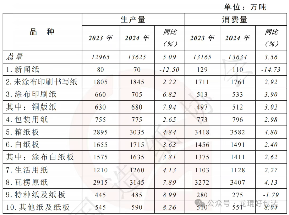 △2024年紙及紙板生產(chǎn)和消費(fèi)情況