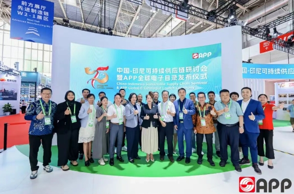 中國國際貿(mào)易促進(jìn)委員會(huì)會(huì)長、黨組書記任鴻斌蒞臨APP展臺出席活動(dòng) 儀式現(xiàn)場,金光集團(tuán)APP副總裁翟京麗作開場致辭,印度尼西亞共和國駐華使館經(jīng)濟(jì)處公使銜參贊娜迪婭作嘉賓致辭。來自供應(yīng)鏈上下游的合作伙伴代表蒞臨展臺,共同見證APP全球電子目錄的發(fā)布,并圍繞“跨境產(chǎn)業(yè)鏈協(xié)同下的新機(jī)遇”這一議題展開圓桌探討。