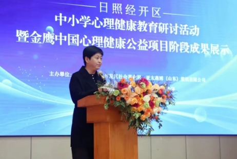 金鷹集團(tuán)山東公共事務(wù)總經(jīng)理、亞太森博(山東)漿紙有限公司黨委書記李潤明對(duì)經(jīng)開區(qū)給予項(xiàng)目的大力支持表示感謝。他指出,金鷹集團(tuán)在中國15個(gè)省(直轄市)建立了42家大型現(xiàn)代化工廠,亞太森博(山東)漿紙有限公司是金鷹集團(tuán)在國內(nèi)投資的最大單體工廠,是中國最大的商品木漿生產(chǎn)企業(yè),是山東省投資規(guī)模最大的外資企業(yè)、僑資企業(yè)。“2025金鷹中國學(xué)校心理健康教育”項(xiàng)目自今年3月份啟動(dòng)以來,得到了日照經(jīng)開區(qū)社會(huì)事業(yè)局的高度重視,通過心理健康教育通識(shí)培訓(xùn)、骨干教師培訓(xùn)、團(tuán)體輔導(dǎo)、線下督導(dǎo)、進(jìn)階培訓(xùn),以及心理團(tuán)體輔導(dǎo)資源包的發(fā)放等將近一年的跟蹤、指導(dǎo)和賦能,為經(jīng)開區(qū)培養(yǎng)了一支可常態(tài)化開展心理健康教育課程及活動(dòng)的教師骨干隊(duì)伍,探索了一套科學(xué)且標(biāo)準(zhǔn)化的校園心理健康教育模式,并針對(duì)項(xiàng)目研發(fā)了一套心理健康測(cè)評(píng)程序,為學(xué)生的心理健康成長營造了良好的環(huán)境。
