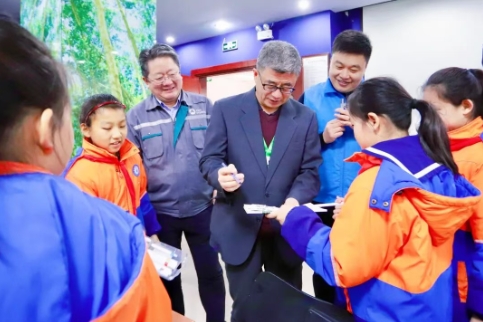隨后,與會領導來到“我是小小造紙家”活動現場,實地觀摩活動開展情況。此次來公司研學的是金海岸小學四年級的同學們,只見大家正圍在桌子前,在公司志愿者的帶領下興致勃勃地用廢紙造著新紙。林玉認真觀摩了同學們的動手過程,并與同學們進行了親切交流,詢問孩子們都有什么收獲和體驗。有的小朋友說學會了造紙流程;有的小朋友說知道了廢紙是如何循環利用的;有的小朋友說明白了節約資源的重要性,這些童言童語也讓林主任頻頻點頭。他鼓勵孩子們要好好學習,用知識把我們的祖國建設得更加美麗。聽到長輩溫暖的鼓勵,孩子們也備受鼓舞,熱情地邀請林主任等領導在自己制作的再生紙上簽字留念,一起許下一份環保的承諾。林主任還與現場工作人員進行了親切交流,認為這個活動寓教于樂,既有樂趣也有意義,以后可以結合自身漿紙產業鏈優勢研發出更多項目。 “喚綠之旅”是日照市生態環境局于2022年策劃啟動的全省首個環保研學教育品牌,通過在全市選取與生態文化、產業發展、宣傳教育相關的場所作為“旅站”,設計研發課程內容,寓教于樂,注重“知識趣味性、體驗參與性、宣傳推廣性”,組織中小學生打卡,現場觀察、聽取講解、參與互動,根植綠色、生態、環保理念,進而喚起全社會公眾環保意識。 亞太森博“我是小小造紙家”是日照市“喚綠之旅”首批綠色企業旅站。截至目前,“我是小小造紙家”已經堅持開展12年,共開展169期,超過1萬名青少年受益。項目也獲得了社會各界的廣泛認可,已被生態環境部宣教基地展示,被山東省生態環境廳評為“最佳公眾參與案例”。