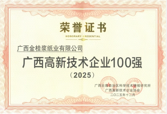 2026年1月30日,廣西高企百強系列榜單暨廣西科技情報研究所2025年度成果發(fā)布會在南寧舉行,會上正式發(fā)布“2025年廣西高新技術(shù)企業(yè)百強”等系列榜單,廣西金桂漿紙業(yè)有限公司憑借資源與環(huán)境技術(shù)領(lǐng)域的優(yōu)秀表現(xiàn)再度上榜,這也是金桂連續(xù)第五年獲評“廣西高企百強”稱號,持續(xù)彰顯其在科技創(chuàng)新能力、產(chǎn)業(yè)引領(lǐng)作用及高質(zhì)量發(fā)展水平方面的突出實力與穩(wěn)固地位。