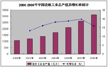 圖2 2000-2006年中國造紙工業總產值及增長率